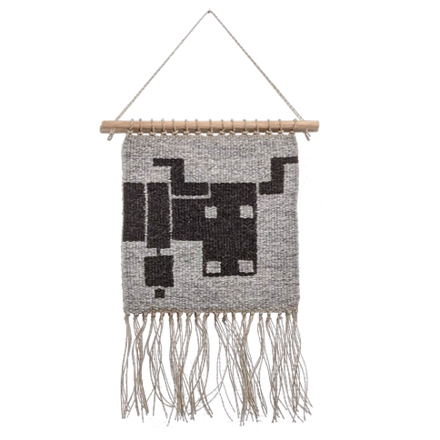 Ce petit kilim-tissage mural fait partie  de la collection "VACHE SALERS"  inspirée par ces magnifiques animaux qui sont symbole du Cantal.